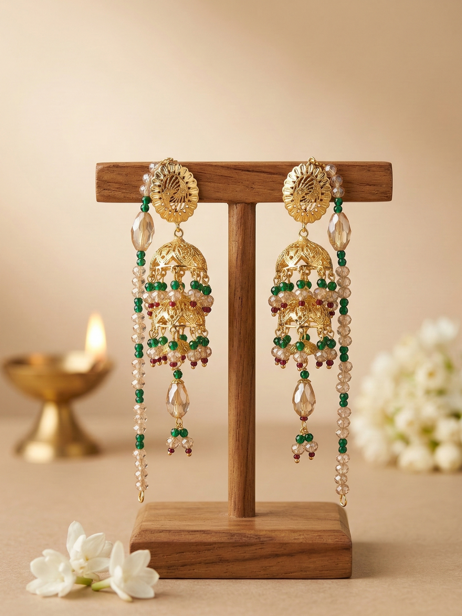 Traditional Floral Temple 925 Silver Jhumka